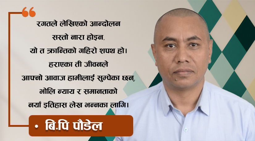 गोलीको छर्राले छेडेर गयो, यो मुटु फुट्यो, थामिएन रगत। म जमिनमा ढलेँ, आँखा खुलेका खुलै रहे। त्यो कोलाहलमा, बन्दुकको आवाजमा, आमालाई याद गरें, बाबालाई याद गरें, गरें बहिनीलाई याद। अनि म त शहीद भएँ... देश बिरामी थियो, उसलाई निको पार्न मेरो रगत चाहियो, मैले रगत दिएँ। एउटा सरकारले मलाई गोली हान्यो, अर्को सरकारले गर्यो “शहीद” घोष...