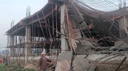 ठेकेदारको लापरवाहीले सेजको प्रदर्शनी भवनको ढलान खस्यो