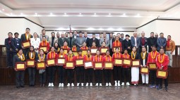 अन्तर्राष्ट्रिय खेलमा पदक विजेता खेलाडीलाई प्रधानमन्त्रीबाट पुरस्कार प्रदान